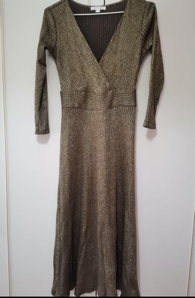 Altın Sarısı Triko Midi Elbise