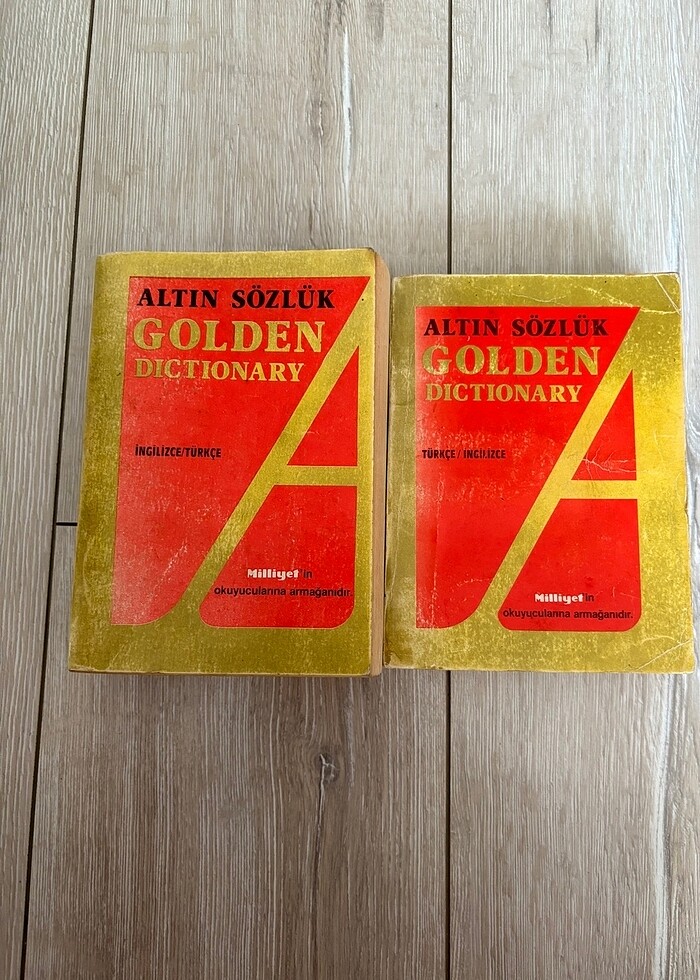 Altın Sözlük – Golden Dictionary (İngilizce–Türkçe / Türkçe–İngilizce) Milliyet gazetesi tarafından okuyucularına armağan edilen bu nostaljik sözlük seti, İngilizce öğrenenler ve koleksiyon meraklıları için harika bir kaynak!