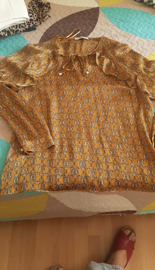 Altın taba renkli Yılan Desenli Uzun Kollu Bluz
