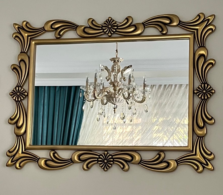 117 x 88 cm boyutunda altın varak görünümlü dekoratif ayna. Üründe hiçbir sıkıntı sorun yoktur çizik boya atma kesinlikle yoktur. Fazla kullanılmadı alıcısına hayırlı olsun.