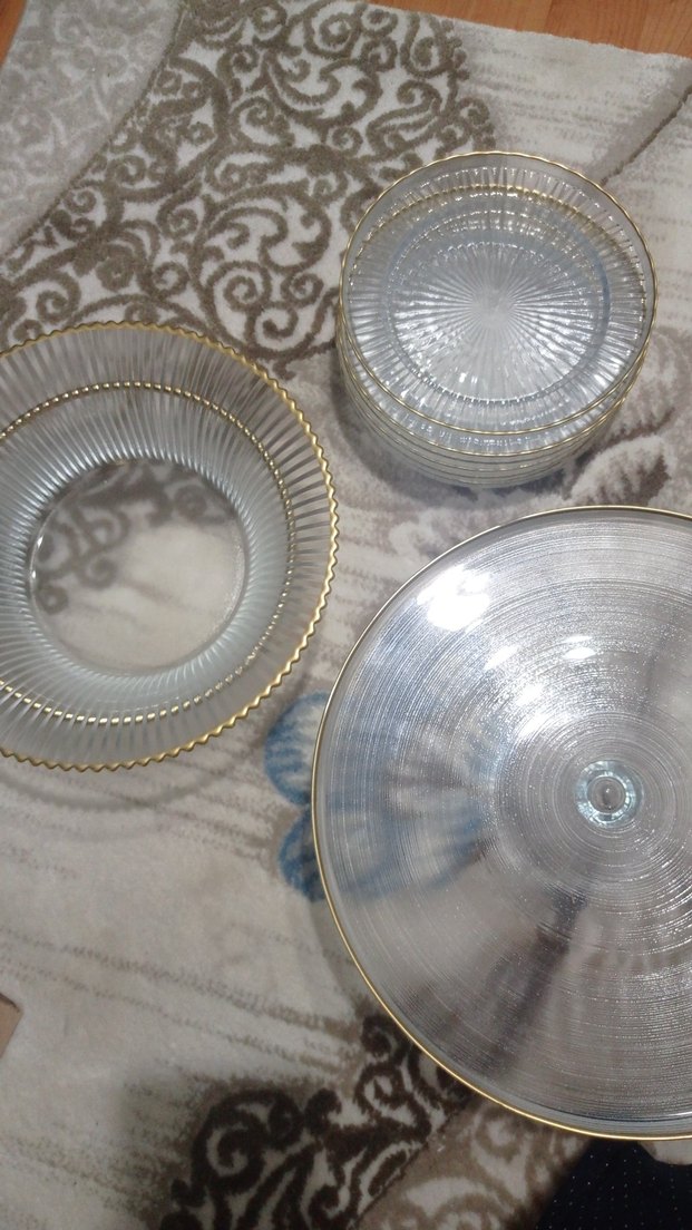 Altın varaklı gri cam tabak seti