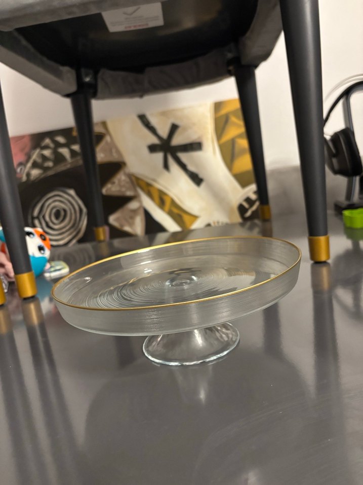 Altın varaklı kenarı ve soyut desenleriyle çağdaş tarzda gri cam tabak. ️