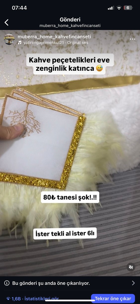 Altın varaklı kahve peçetelikleri eve zenginlik katıyor. İster tekli ister 6'lı set olarak alınabilir, tanesi 80₺. ☕