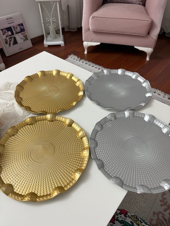 Altın ve Gri Metalik Desenli Tabaklar