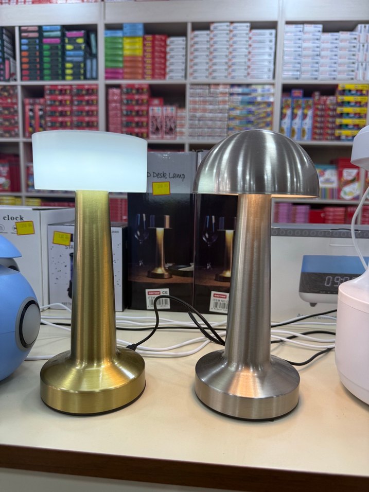 renkli tabanı ve ışıklı başlığıyla bu masa lambası, modern tasarım ve sıcak aydınlatma sunar.