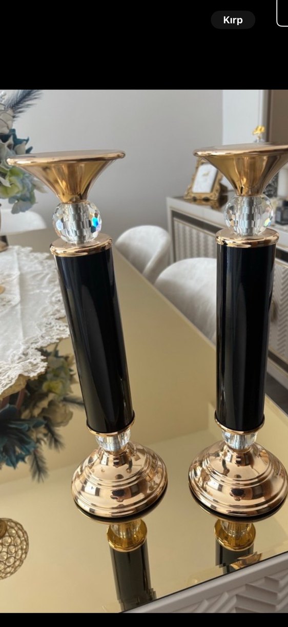 Altın ve siyah renklerde, kristal detaylı iki şamdan seti, şıklık katmak için ideal. ️