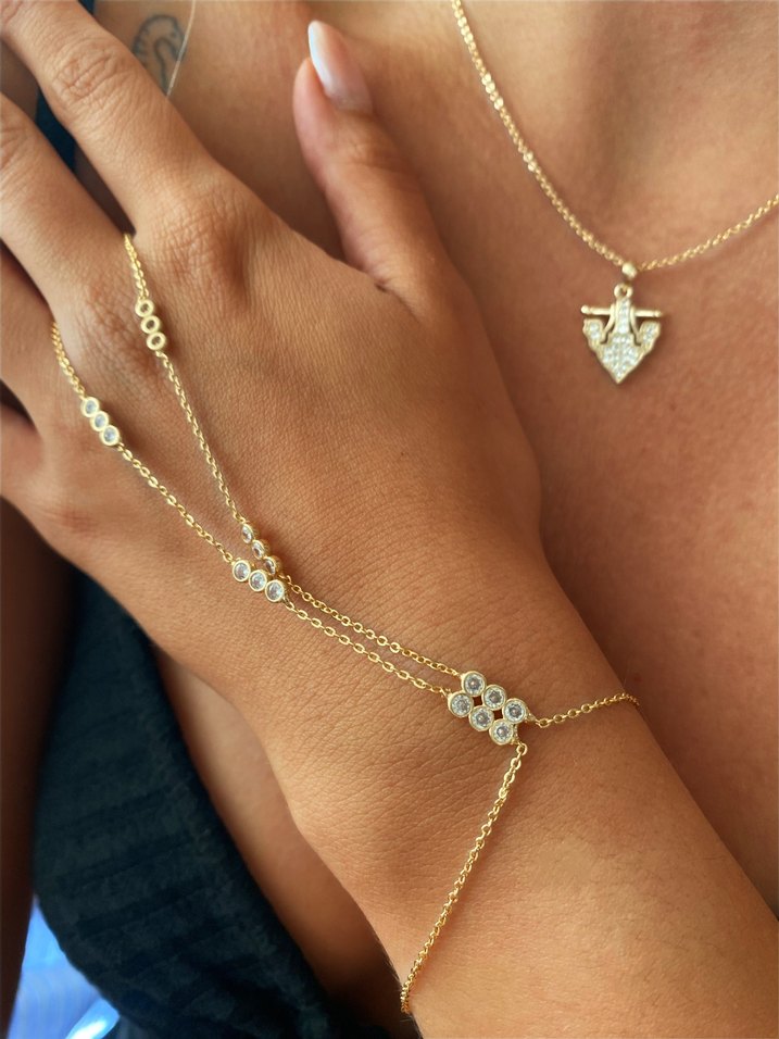 Altın Zincir Detaylı Kadın El Zinciri