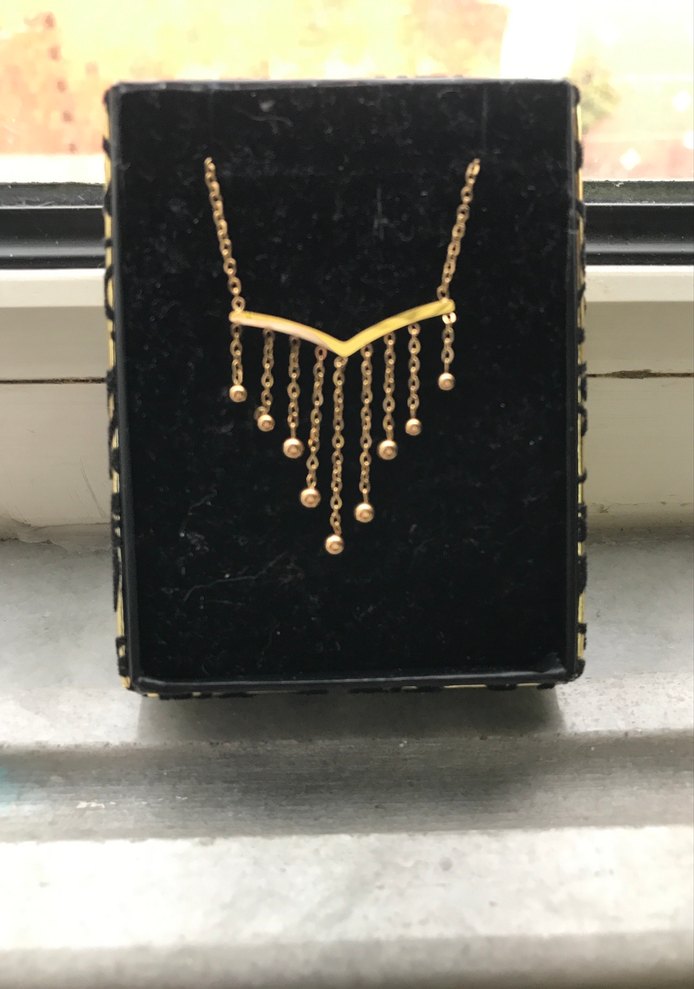 Zincir detaylı, altın renkli midi kolye. Modern tasarımıyla romantik akşamlar için klasik zarafet sunar. ✨