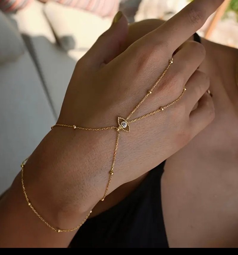Altın renginde, ince zincir detaylı minimalist el zinciri. Yılan deseni ve ortasında süsleyici detay bulunur. Günlük kullanım için uygundur. ✨