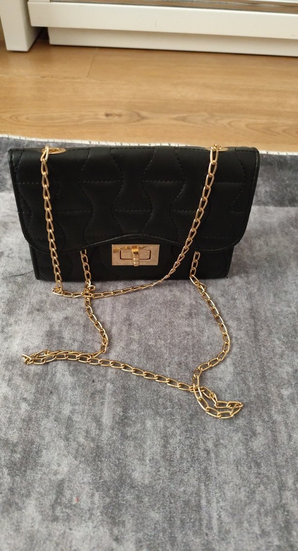 Altın Zincir Detaylı Siyah Biker Çanta