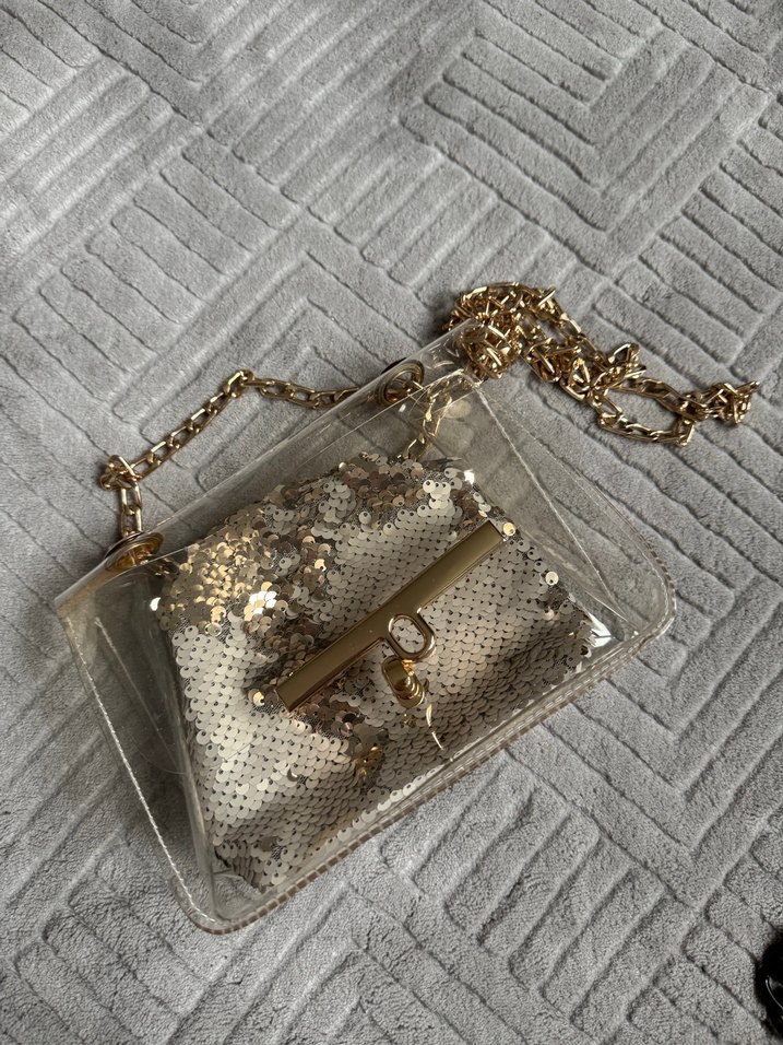 Parlak altın renkli, yılan desenli kadın çantası zincir detayına sahiptir. Plastik malzemeden yapılmış, günlük kullanıma uygun gösterişli ve bohem tarzda.