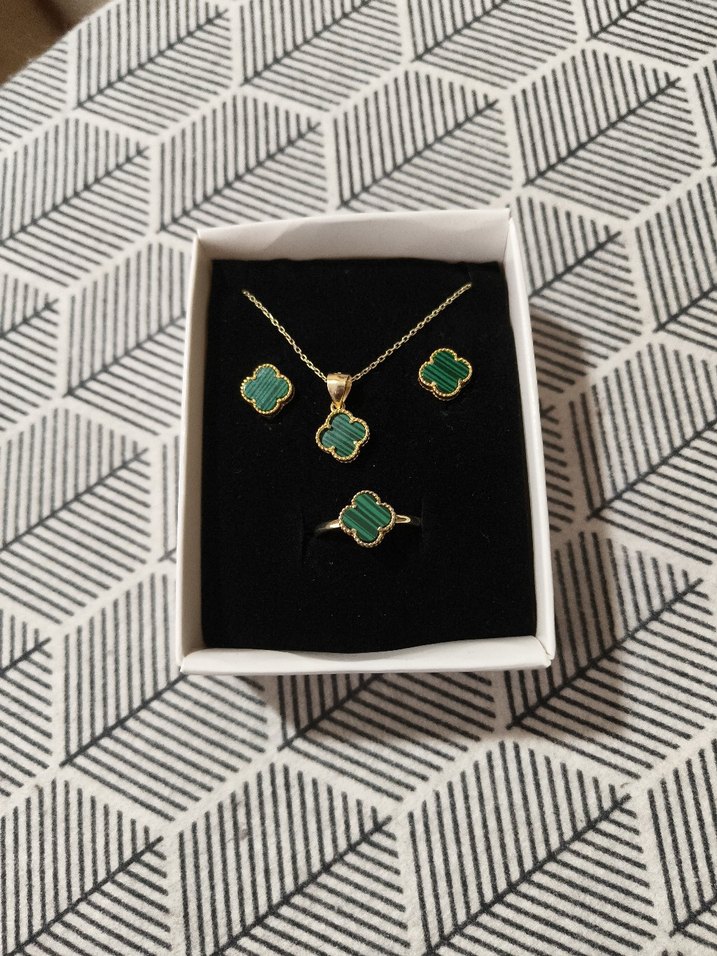 Altın renkli, kısa zincirli kolye ve uyumlu küpe ile yüzük seti. Mini kare desenli, günlük kullanıma uygun klasik zarafet sunar. ✨