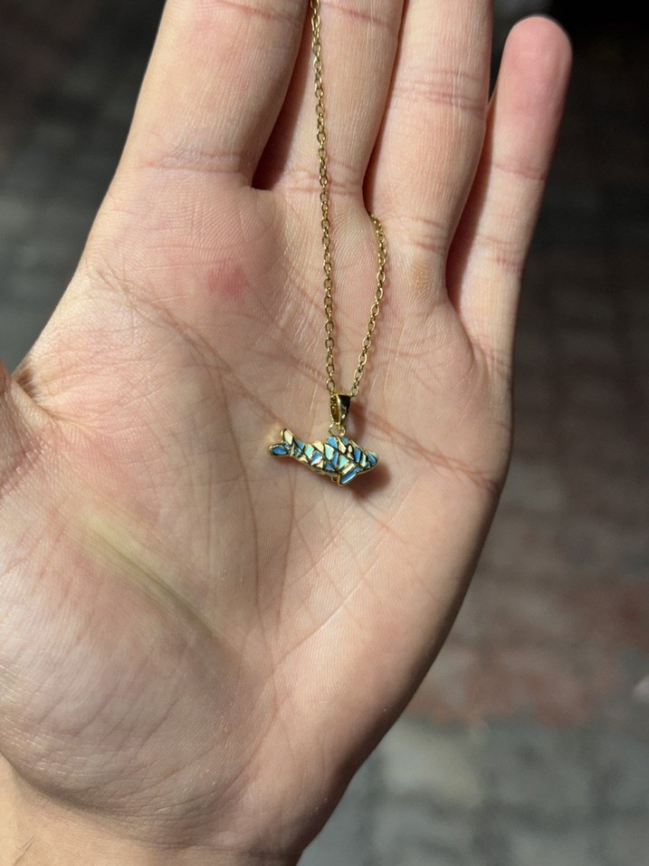 Altın renkli zincir ve hafif tonlarda yılan desenli küçük kolye ucu ile günlük kullanıma uygun minimal tasarımda kolye.