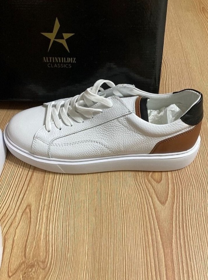 Altınyıldız beyaz erkek spor ayakkabılar, bağcıklı tasarımı ve kauçuk tabanıyla günlük kullanım için rahat ve şık bir seçenek sunar. hiç kullanılmadı etiketli üründür.