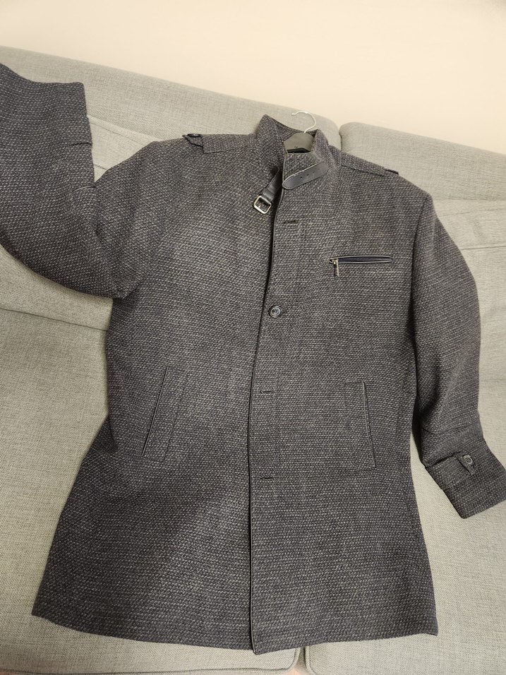 Sıfır ayarında , kuru temizlemesi yapılmıştır.54 beden . Antrasit rengi erkek kabanı. Hem düğmeli hem fermuarlı. Iki kotuk arası 65 cm, kol boyu 65 cm, boy uzunluğu 90 cm dir. Satın alacak olanlar bu ölçülere dikkat etmeliler .