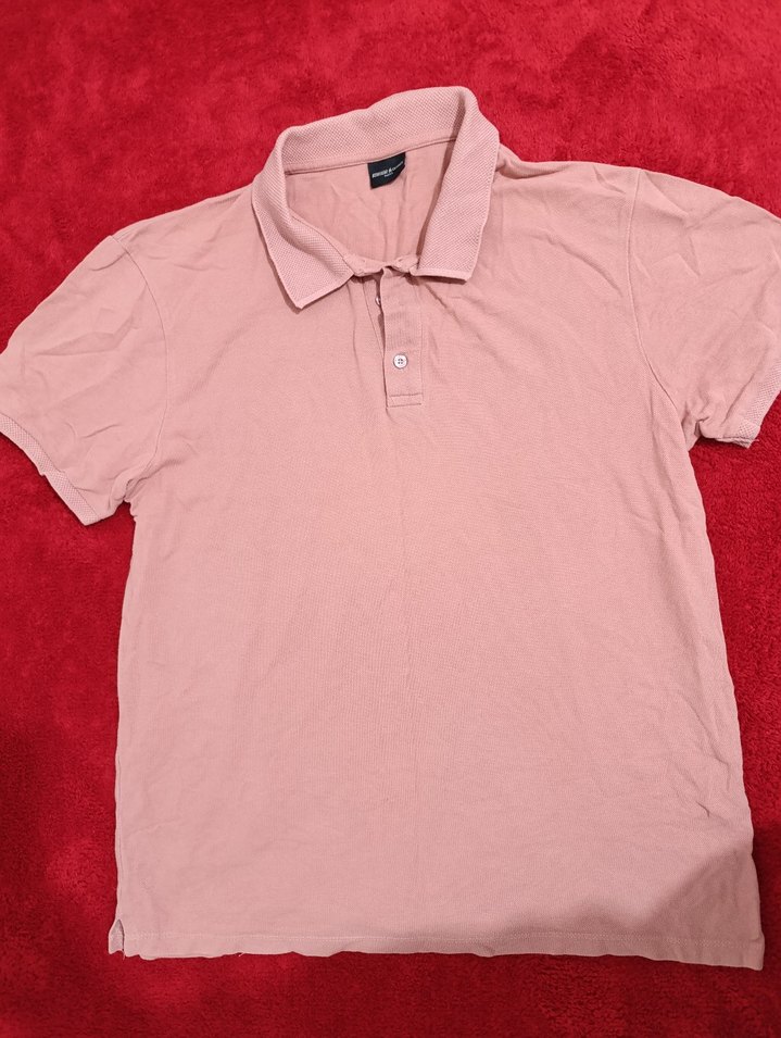 Pembe pastel renkte, yakalı ve kısa kollu, pamuk kumaştan yapılmış, günlük kullanıma uygun, slim fit kesim erkek polo tişört.