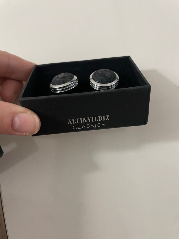 Altınyıldız Classics kol düğmeleri siyah ve gri tasarıma, parlak metal detaylara sahiptir. İş stiline zarif bir dokunuş katar. ️