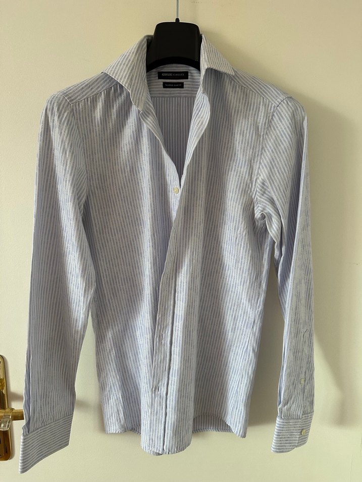 Altınyıldız Classics marka, slim fit kesim çizgili gömlek. Şık ve klasik tasarımı sayesinde iş hayatı ve günlük kullanım için uygundur. Kumaşı hafif ve rahattır. Temiz ve bakımlı durumdadır, yırtık veya leke yoktur. Beden: Görselden ve etiketten kontrol edilebilir. Detaylı ölçü için mesaj atabilirsiniz. Gri tonlarda ince çizgili, keten kumaştan erkek gömlek. Uzun kollu, düğmeli, regular fit ve normal boydadır. İş ve günlük sokak stiline uygundur. #altinyildiz #altinyildizclassics #erkekgömlek #slimfit #çizgiligömlek #klasikgömlek #ofisstili #işkombini #erkekmoda #şıkgiyim #dolapsatış #temizürün #klasikstil #gömlek