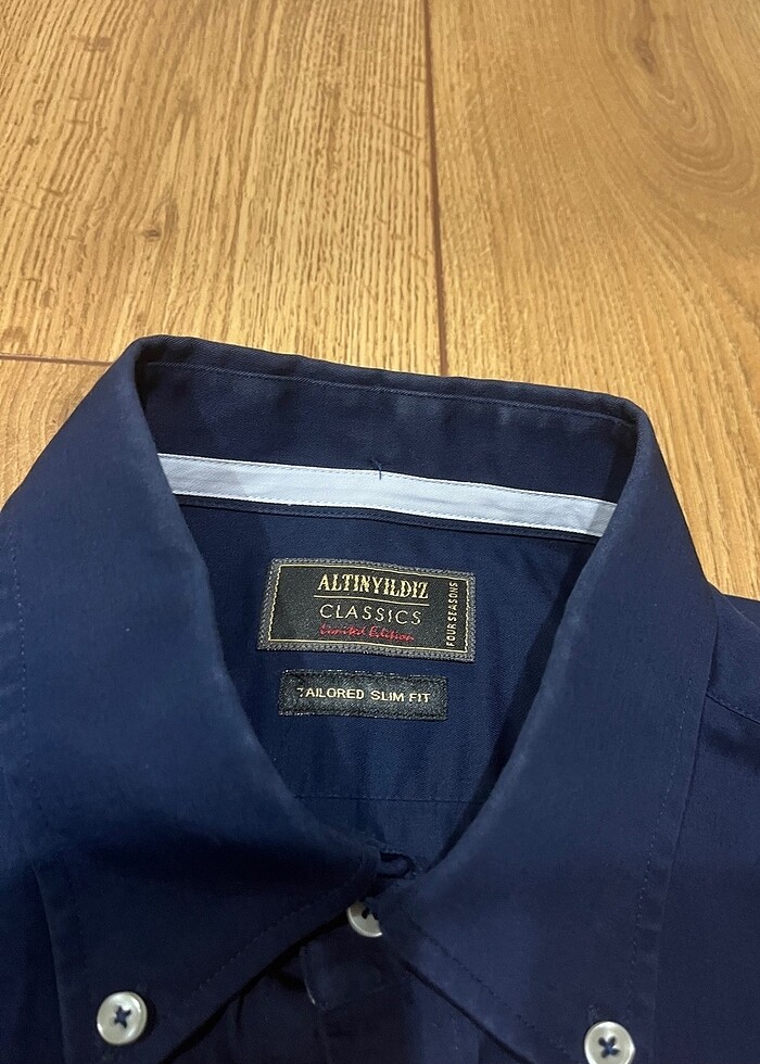 Altınyıldız 0 pamuk L beden Slim fit lacivert erkek gömlek yakalarında kullanıma bağlı hafif renk atması vardır başka hiçbir yerinde hiçbir sorun yoktur aklınıza takılan ne varsa sorarak alın iadesi yoktur