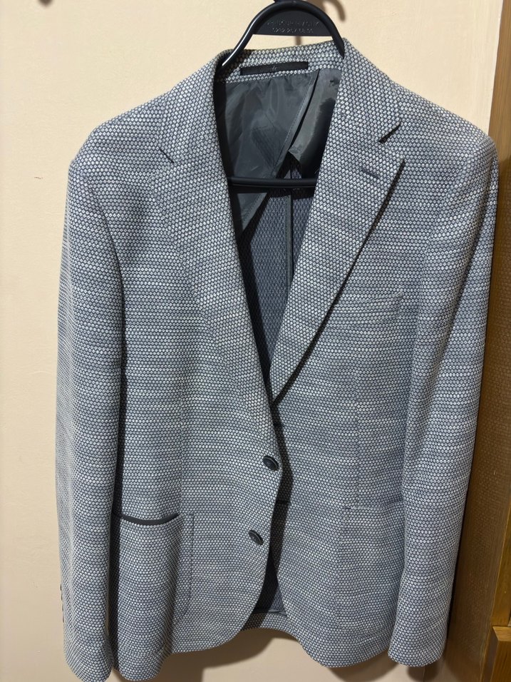 Gri renkli erkek takım ceketi, klasik şıklık ve çağdaş tarzı yansıtır. Notch yaka, düğmeli ve uzun kolludur, ofis kullanımı için uygundur. ️
