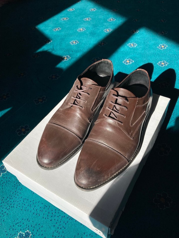 Koyu kahverengi deri klasik erkek ayakkabıları, tokalı tasarımıyla günlük kullanıma ve trend rahat tarzlara uygundur. Düz, desensiz yüzeye sahiptir.