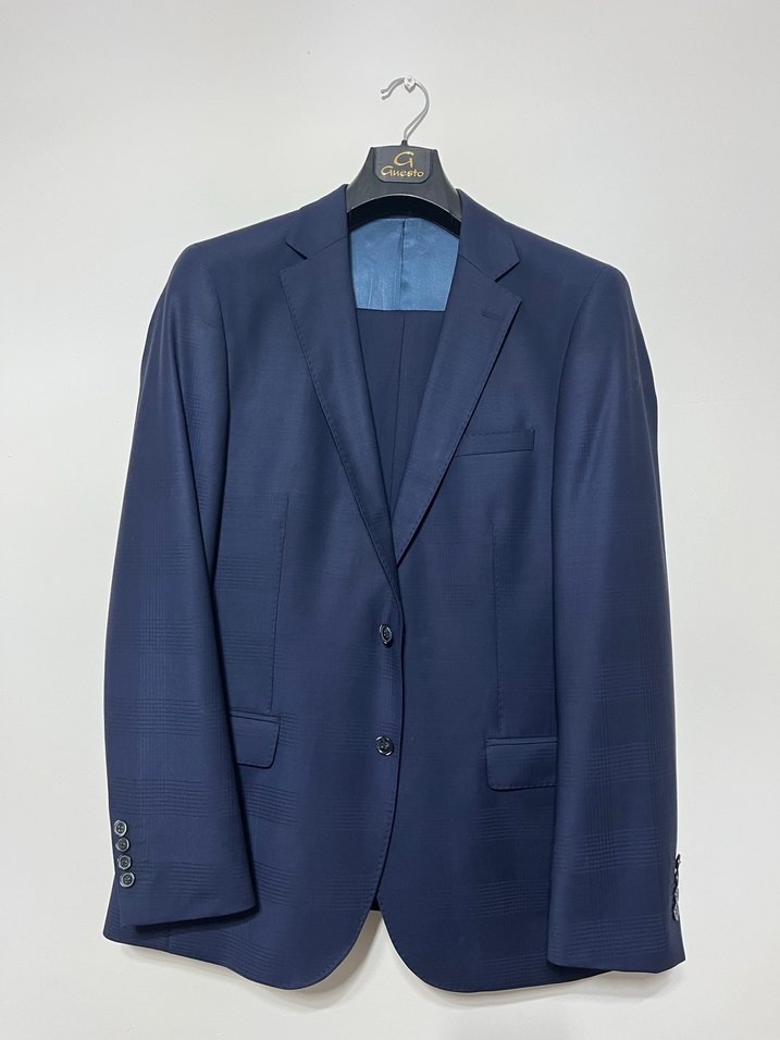 4-5 Kez giyildi Tertemiz Lacivert renkte, klasik kesim ve yakalı, düğmeli erkek takım elbisesi. Uzun kollu ve normal boyda, modern klasik tarzda ofis kullanımı için uygun.