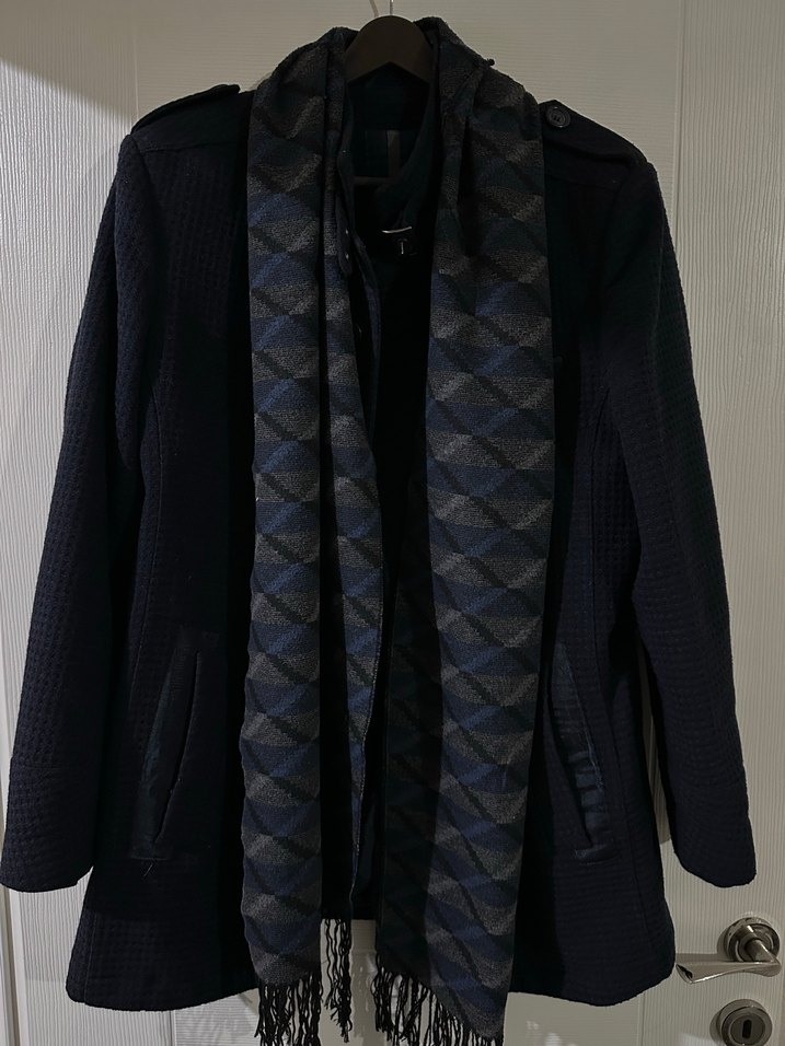 Tertemiz kullanılmıştır. Harika bir duruşu var. Lacivert renk, hafif siyah işlemeli bir rengi var. Kumaşı yün ağırlıklıdır. Güzel zamanlarda giydim fakat fazla olduğu için satıştadır. Kullanıma engel bir problemi yok. Sadece cep kısmında hafif bir yıpranma var. (Son fotoğraf) Alan kesinlikle memnun kalacaktır. İki kol altı arası 49-50 cm, boy 85 cmdir.