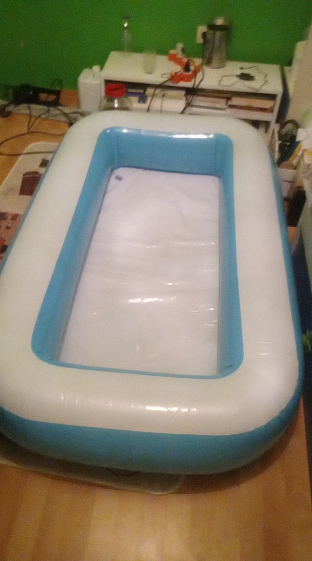 Mavi pastel renkte, şişme ve dikdörtgen şekilli su havuzu. 165*65 cm. Dayanıklı malzemeden üretilmiştir ve su oyunları için uygundur. Annemi yıkamak için almıştım. Ancak hiç kullanmadı. Alana hayırlı olsun.