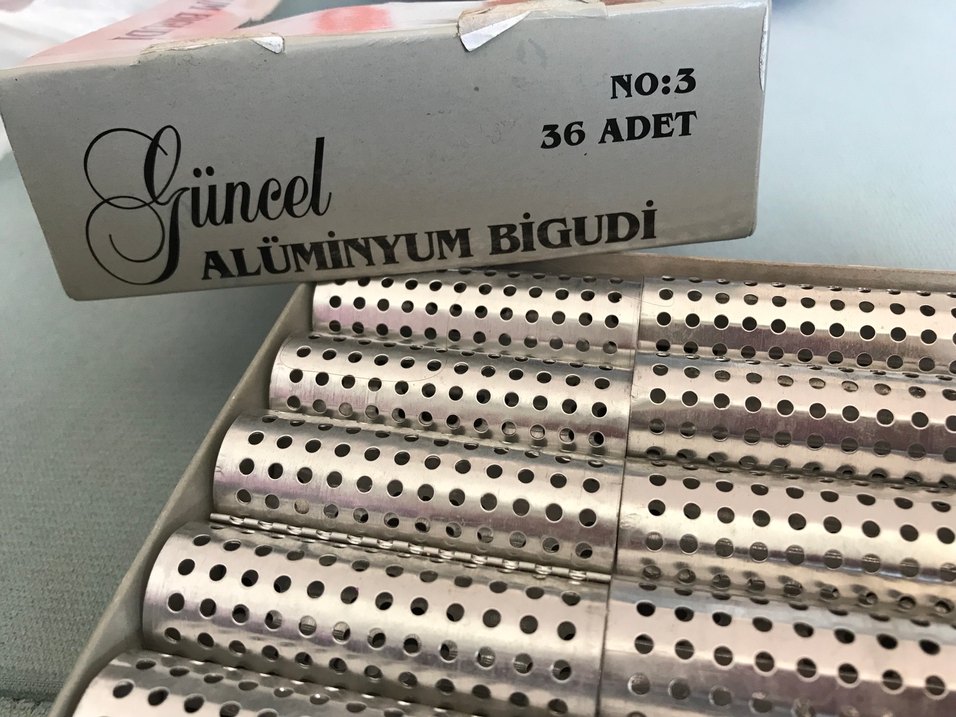 Yeni ürün No:3 numaralı, delikli alüminyumdan yapılmış 36 adet büyük boy saç bigudisi seti. Sadece 1 kez eğitimde kullanıldı sıfırdan farksız
