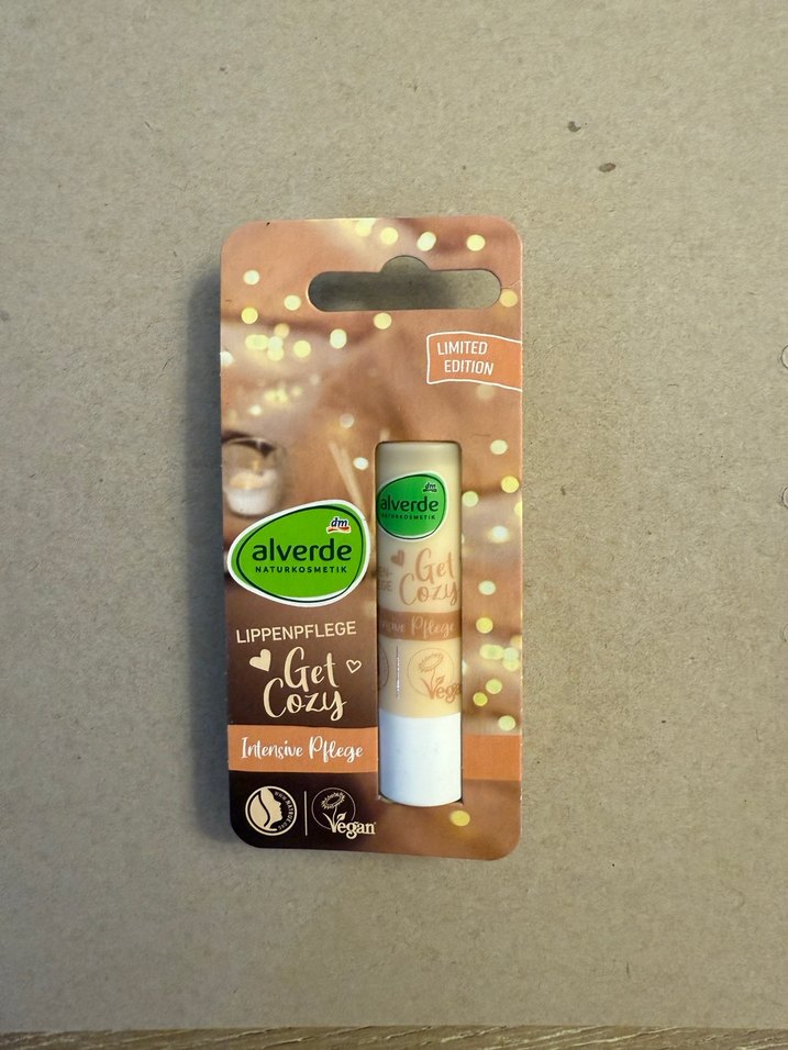 Alverde Get Cozy dudak bakım stick, pastel bej renkte, nazik ve besleyici koruma sağlar. Vegan formüle sahiptir. Dudak koruyucu balm. Almanya’dan alındı. Hiç kullanılmadı