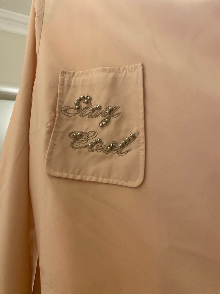 Pudra pembe sırtı boncuk işlemeli fermuarlı kap