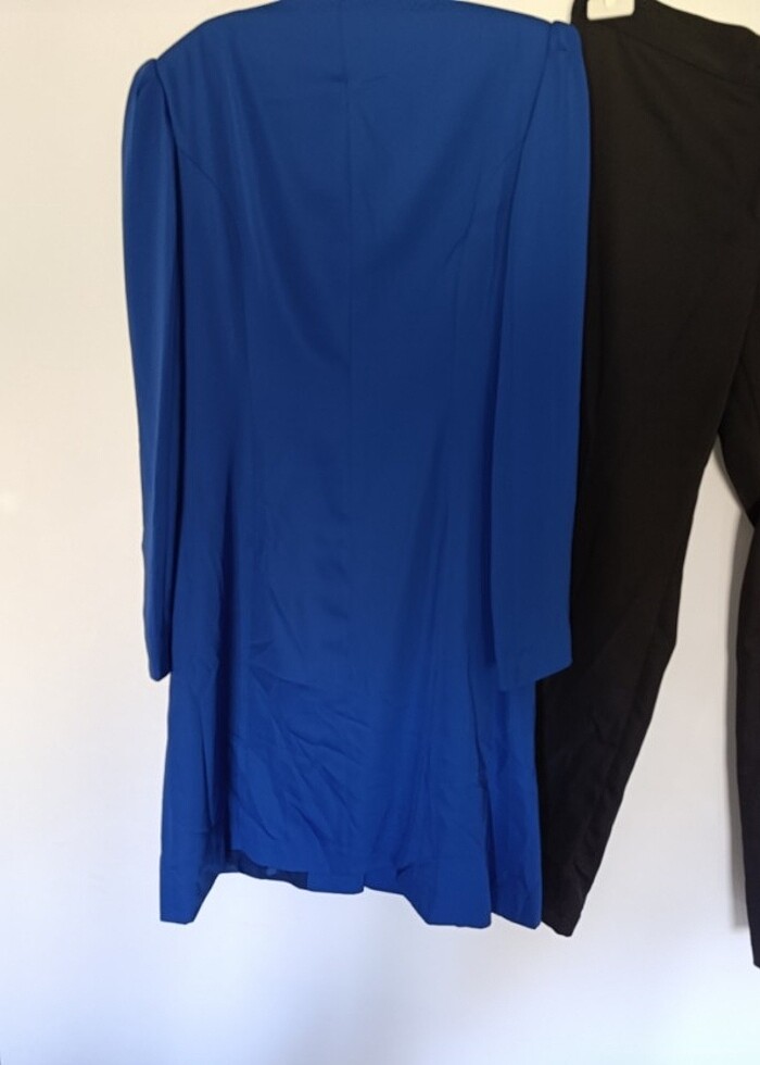 Alvina marka abiye takım. 1 kez giyildi üstü 42 alt 40 beden. Kemeri kayboldu. Saks mavisi rengi.