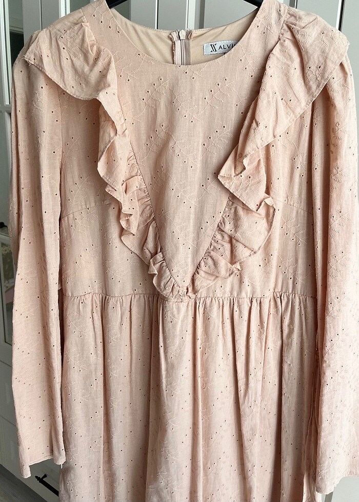 Sadece bir kez giyildi . Boyu 137 cm,astarlıdır . (Kol kısmında astar yok) pamuklu yazlık bir elbise. 42 beden yazmasına rağmen 38-40 beden uyumlu olduğunu düşünüyorum