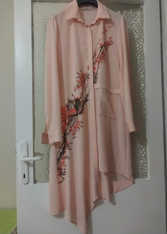 Sadece bir kaç kez giyildi yeni gibi etek uçlarına doğru baskı hatası 2 minik boya lekesi vardır son fotoda gösterdim.boy 90 cm 100 cm iki kol arası genişlik 52 cm