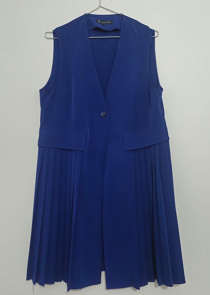 Alvinadan alınmış ve sadece 1 kere toplantıda kullanılmıştır Kumaşı çok kalitelidir Kusuru yoktur Boyu 93 cm iki koltuk arası 49 cm dir Saks mavisidir