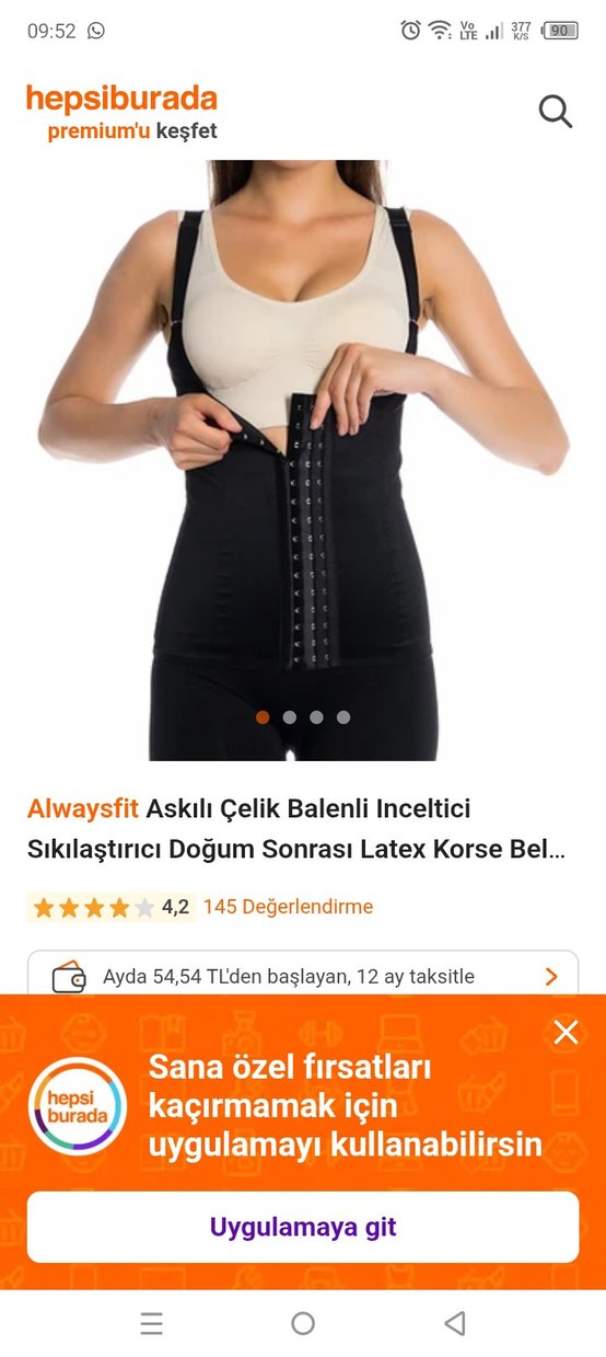 Askılı, çelik balenli ve lateks malzemeden yapılmış siyah renkli, doğum sonrası sıkılaştırıcı ve inceltici korse. Orta boy ve vücuda oturan yapıda. sadece 2 gün kullandım sezeryannoldugum için dikislerimden dolayı kullanmaadim