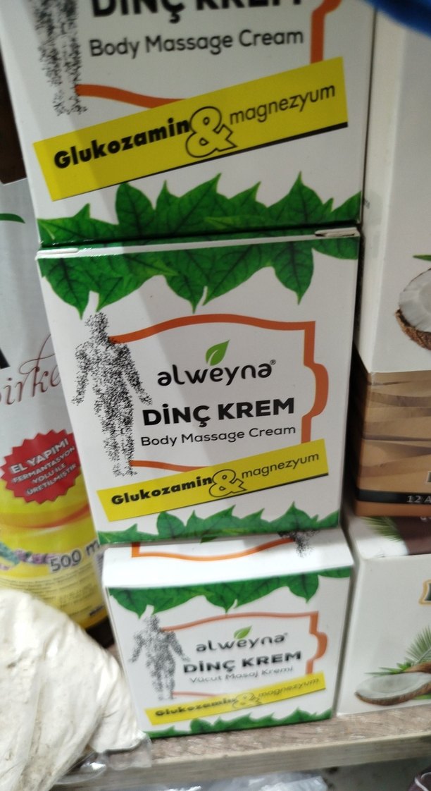 Alweyna Dinç Krem, glukozamin ve magnezyum içeren vücut masaj kremidir, kas ve eklem rahatlığına destek olur.