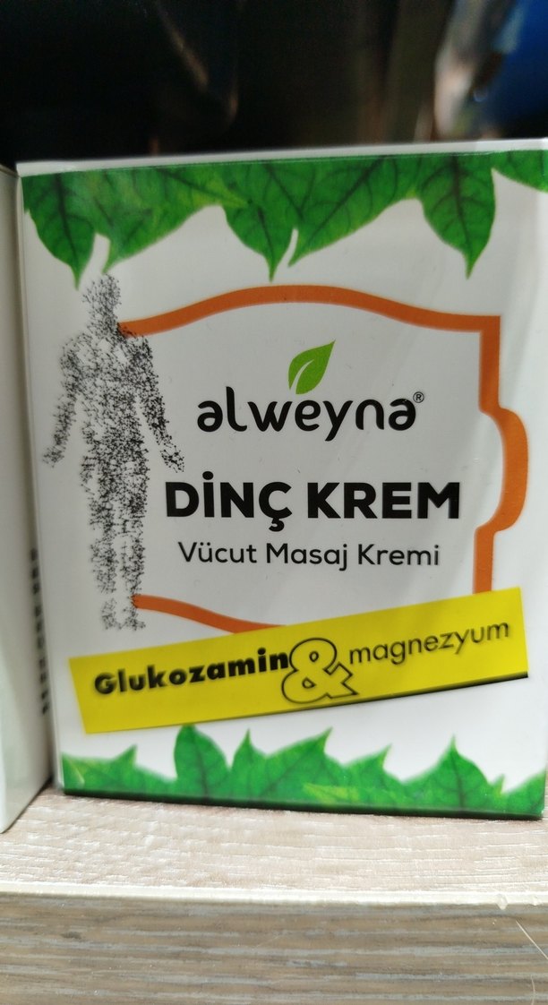 Alweyna Dinç vücut masaj kremi, glukozamin ve magnezyum içerir. Vücut rahatlığı ve gevşemeyi destekler.