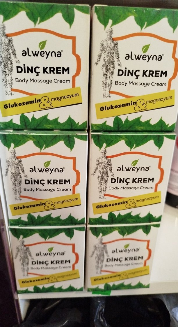 Alweyna Dinç Krem, glukozamin ve magnezyum içeren vücut masaj kremidir. Kas rahatlamasını ve cilt konforunu destekler.