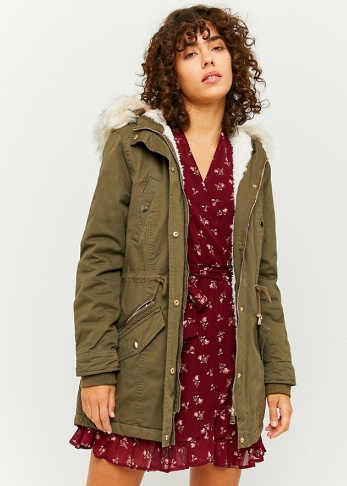 Ambar marka kadın S/36 beden Haki renk Parka Kaban ürün sıfır ayarında tertemizdir ölçüleri boy 75 cm en 52 cm