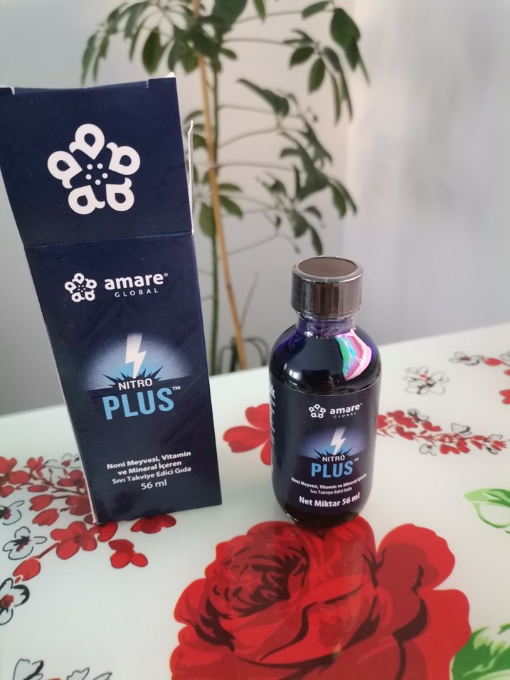 Amare Nitro Plus Noni ve doğal özler içerir, damlalık mevcut. 56 ml hacmindedir.