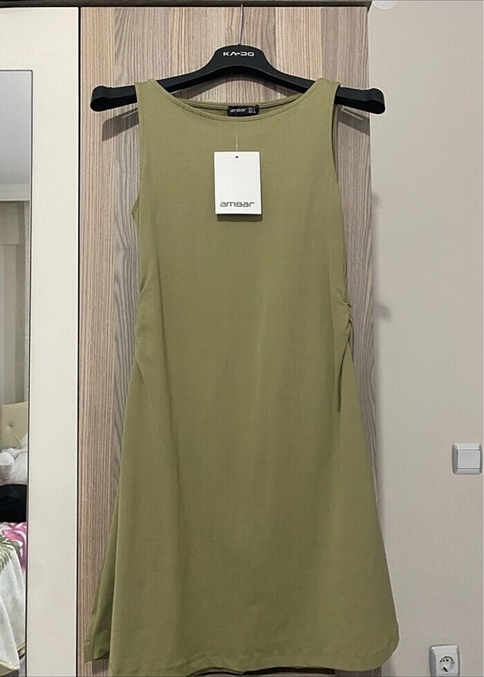Ambar büzgülü yeşil elbise