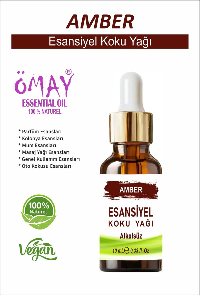 %100 doğal ve alkolsüz amber esansiyel koku yağı. Parfüm, kolonya, mum, masaj yağı ve genel kullanım için uygundur. Vegan dostu.