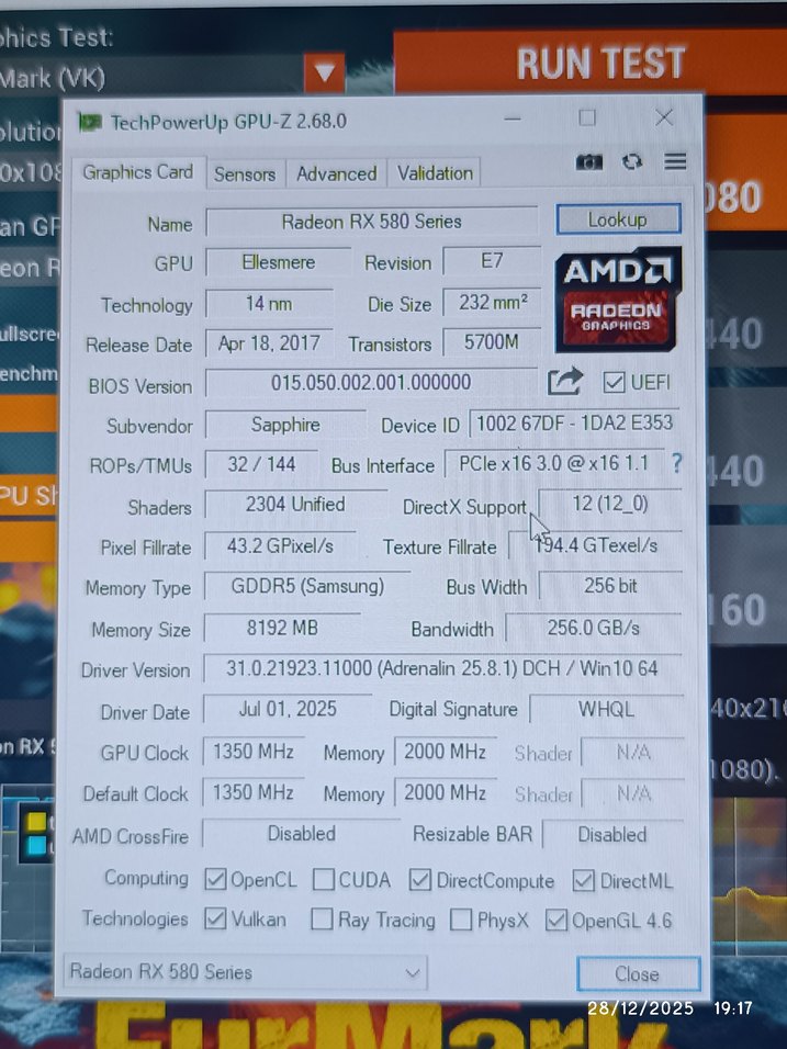 8GB GDDR5 belleğe sahip AMD Radeon RX 580 ekran kartı, 2304 shader ve 256 bit bellek veri yolu ile DirectX 12 ve Vulkan destekler. GPU hızı 1350 MHz.