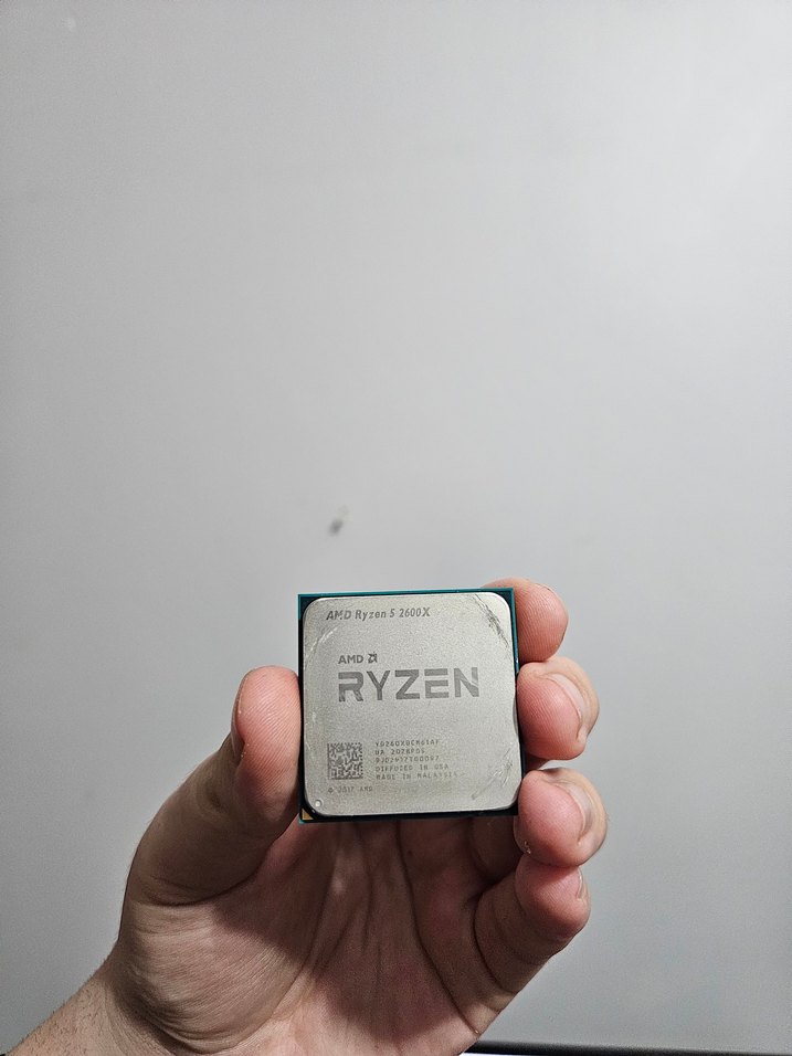 AMD Ryzen 5 2600X işlemci, parlak beyaz yüzeye ve belirgin Ryzen markasına sahiptir. Masaüstü bilgisayar performansı için uygundur. ⚙️