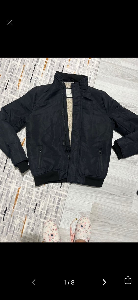 Siyah renkli, fermuarlı ve yüksek yakalı erkek montu. Sentetik kumaştan, uzun kollu ve baskılı desene sahip, günlük kullanıma uygun. S beden yazıyor etiketinde ama m bedene daha uygun gibi. Ölçüleri fotolarda ekli. İçi peluş tüylü sıcacık tutar. Defosu yoktur. Kullanıma bağlı yıpranma olabilir. Fiyatı uygun tutuyorum.