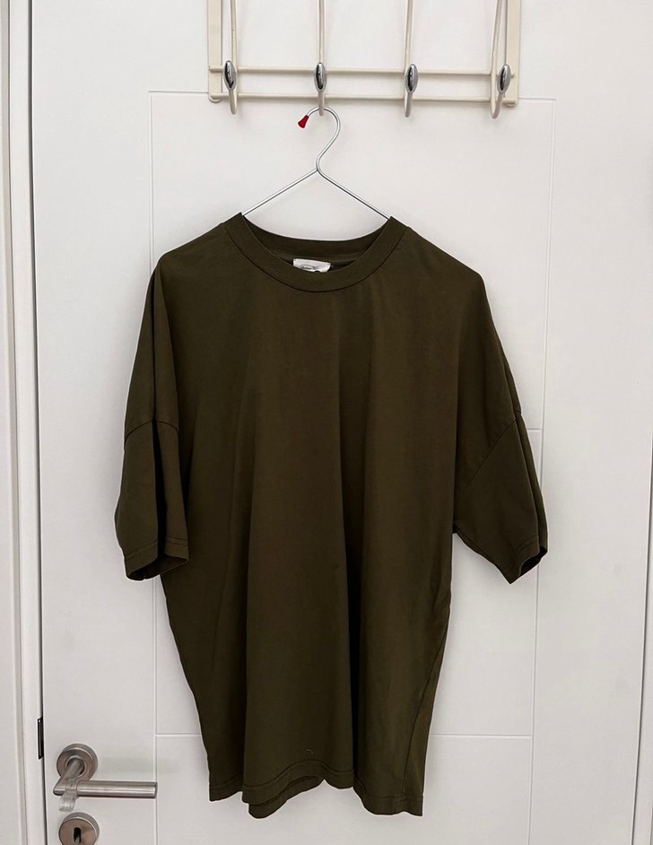 American Vintage yeşil erkek tişört. Oversize kesim, kolları uzun. Vakkorama'dan alınma, ekran görüntüsü mevcut. Hiçbir problemi bulunmamakta. S beden. Boyu 73 cm, eni 56 cm.