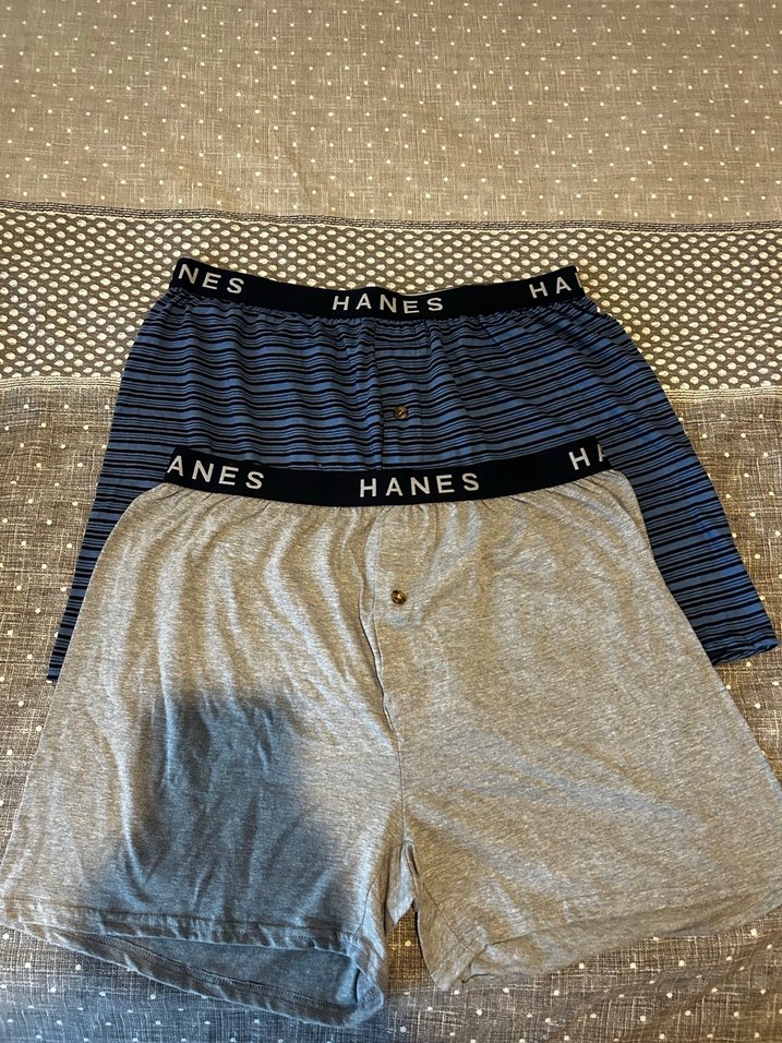 Gri ve mavi renklerde, normal boy ve çok geniş kesim erkek boxer. Hanes markalı konforlu bel bandı ve yumuşak kumaş, athleisure tarzına uygun.