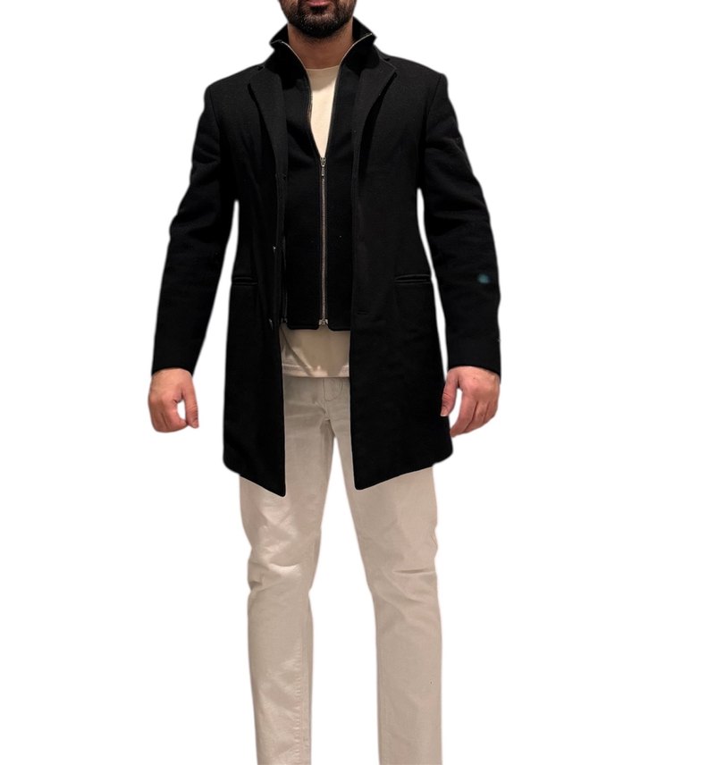 Ünlü amerikalı designer John Varvatos’un kabanı. Medium Cepleri dikili Kabanın ön parçası fermuar ile ayrılabiliyor normal 3 düğmeli kaban haline gelebiliyor.