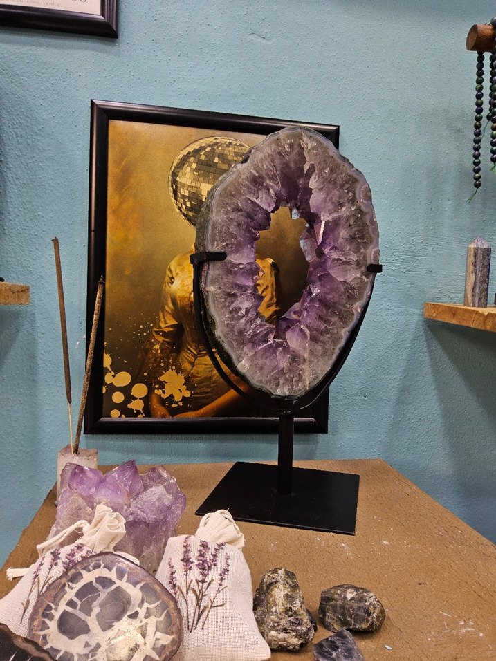 Ürün 3,900 kilogramdır. 19 cm genişlik 36 cm yükseklik demir ayaklığı ile gönderim olacaktır. tamamen koleksiyonluk bir parçadır. Brezilya ürünüdür. stres ve kaygıyı azaltarak duygusal dengeyi sağlar, zihinsel berraklık ve huzur verir. Ayrıca negatif enerjilerden korunmaya yardımcı olurken uyku kalitesini iyileştirir. Mor renkli değerli taş, güzel görünümüyle beraber sağlığa olan faydalarıyla da dikkat çeker.
